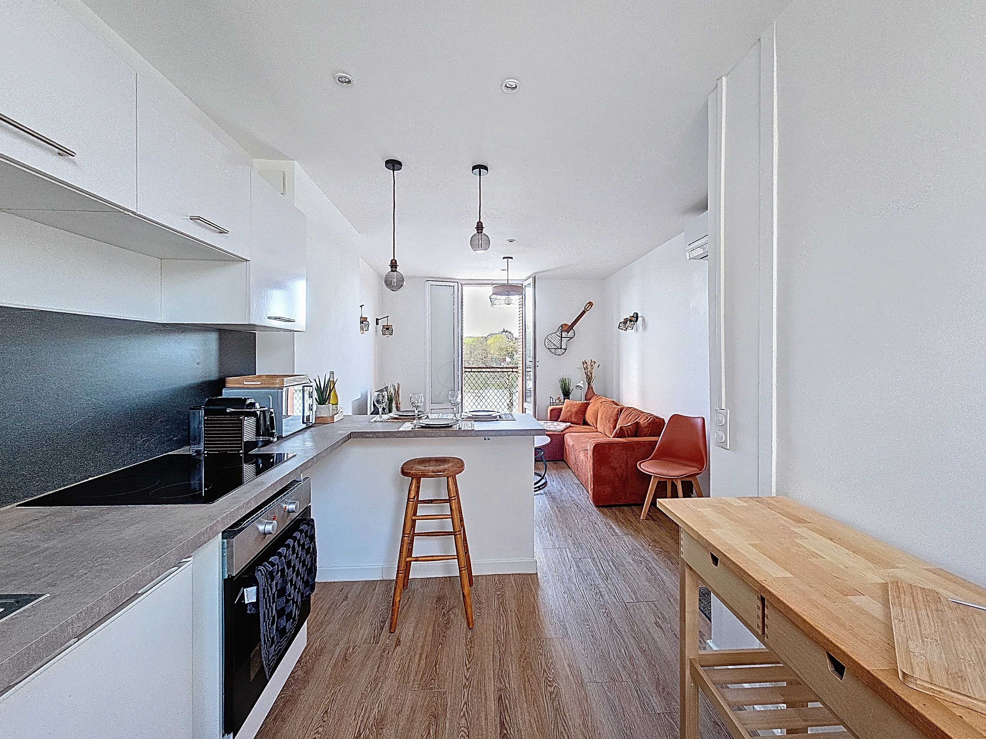 📺 Salon se transforme en véritable bulle de détente : TV connectée, Wi-Fi ultra-rapide et espace repas pour quatre. Canapé convertible pour un couchage pour 2 personnes.