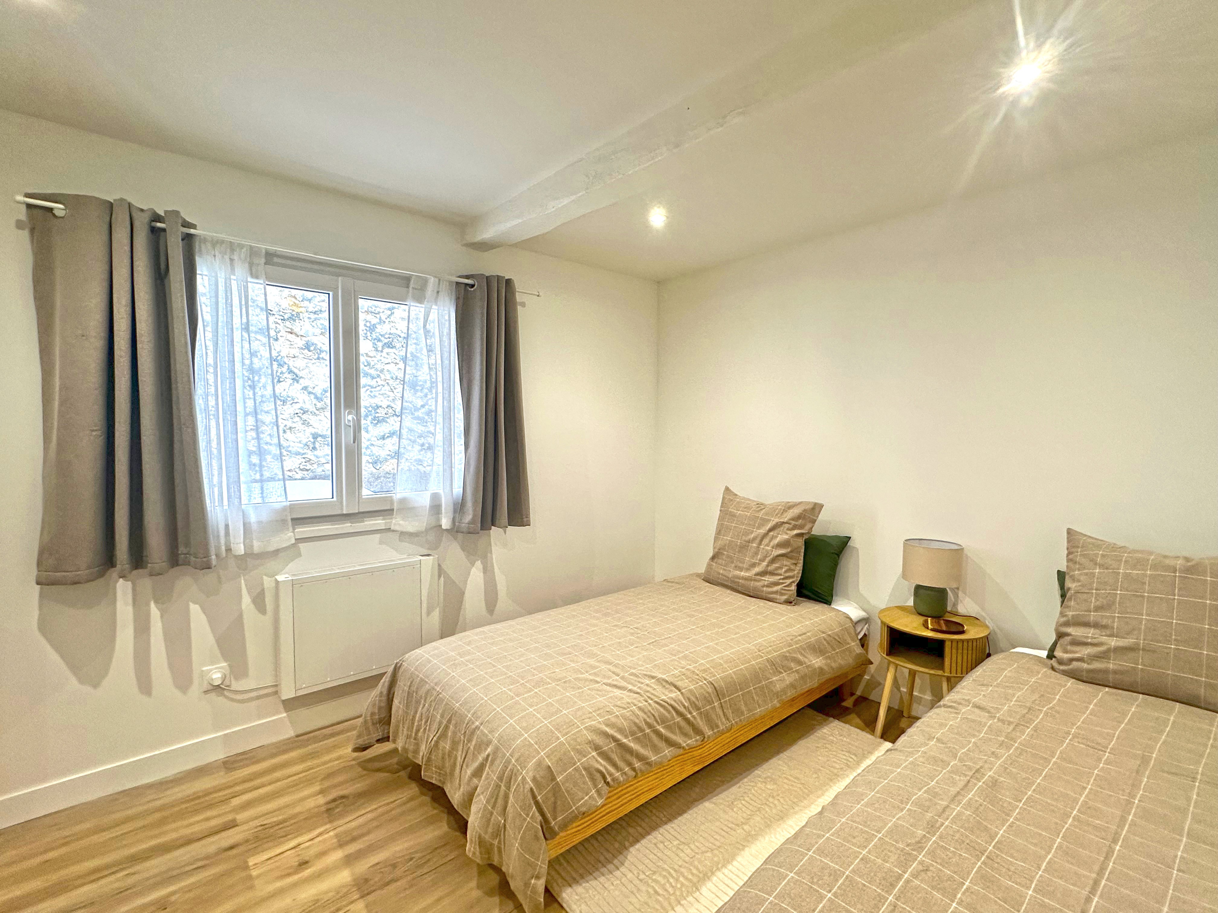 🛏️ Deux chambres dont une avec un lit double Queen Size (160 x 200), et une chambre avec deux lits simples