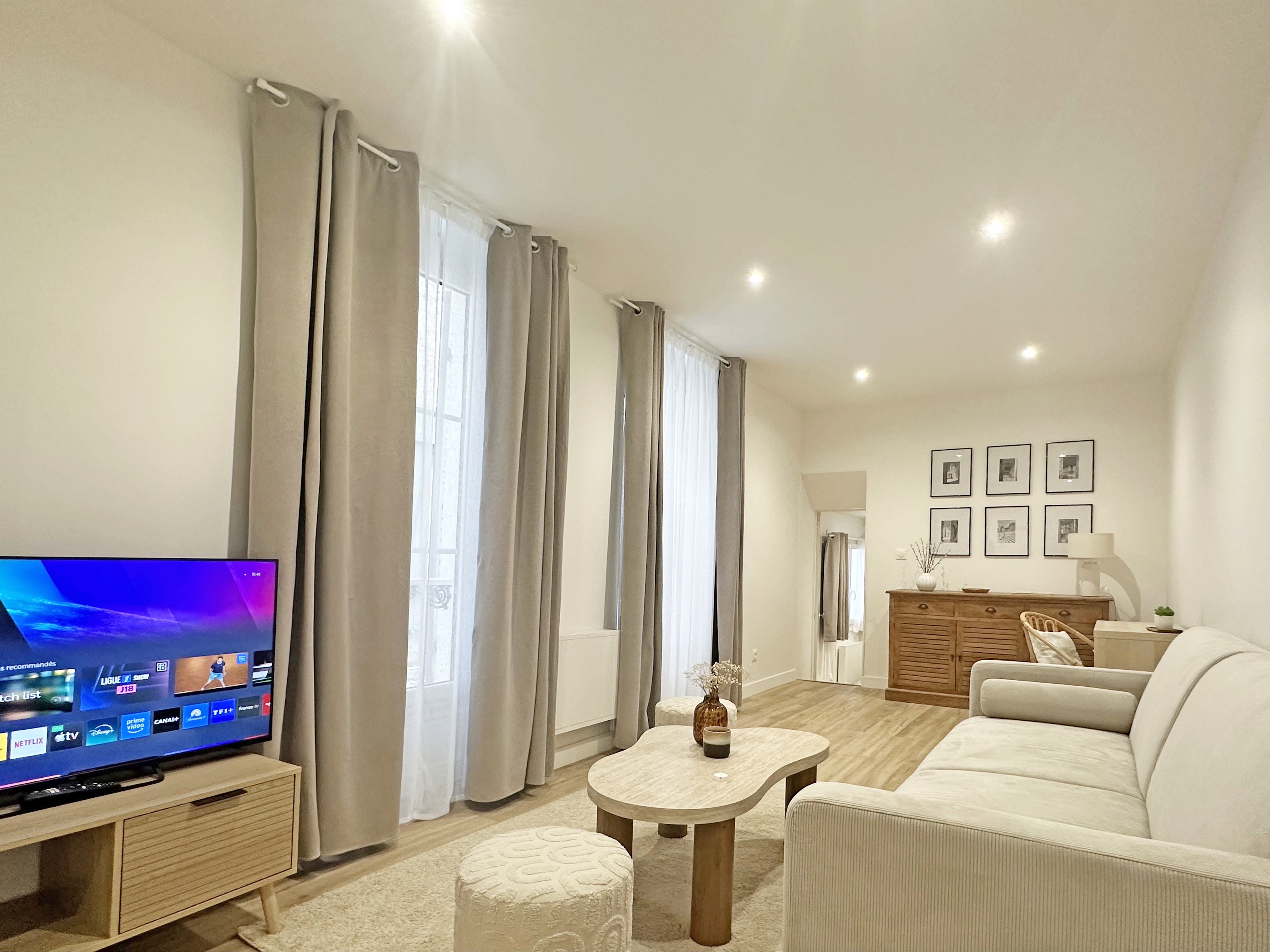📺 Salon se transforme en véritable bulle de détente : TV connectée, Wi-Fi haut débit et espace repas pour quatre.