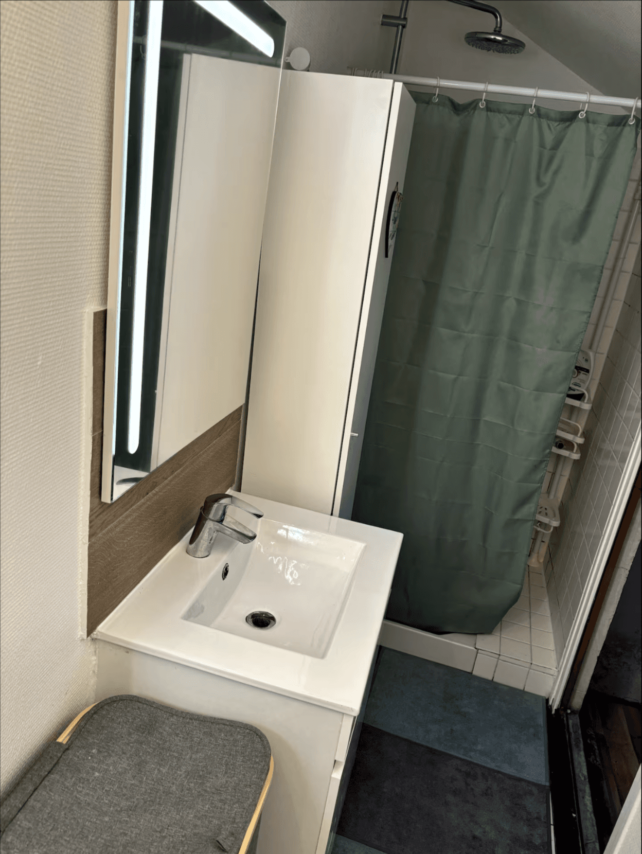🚿 Salle de bain avec une douche, un lavabo.